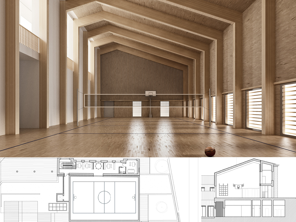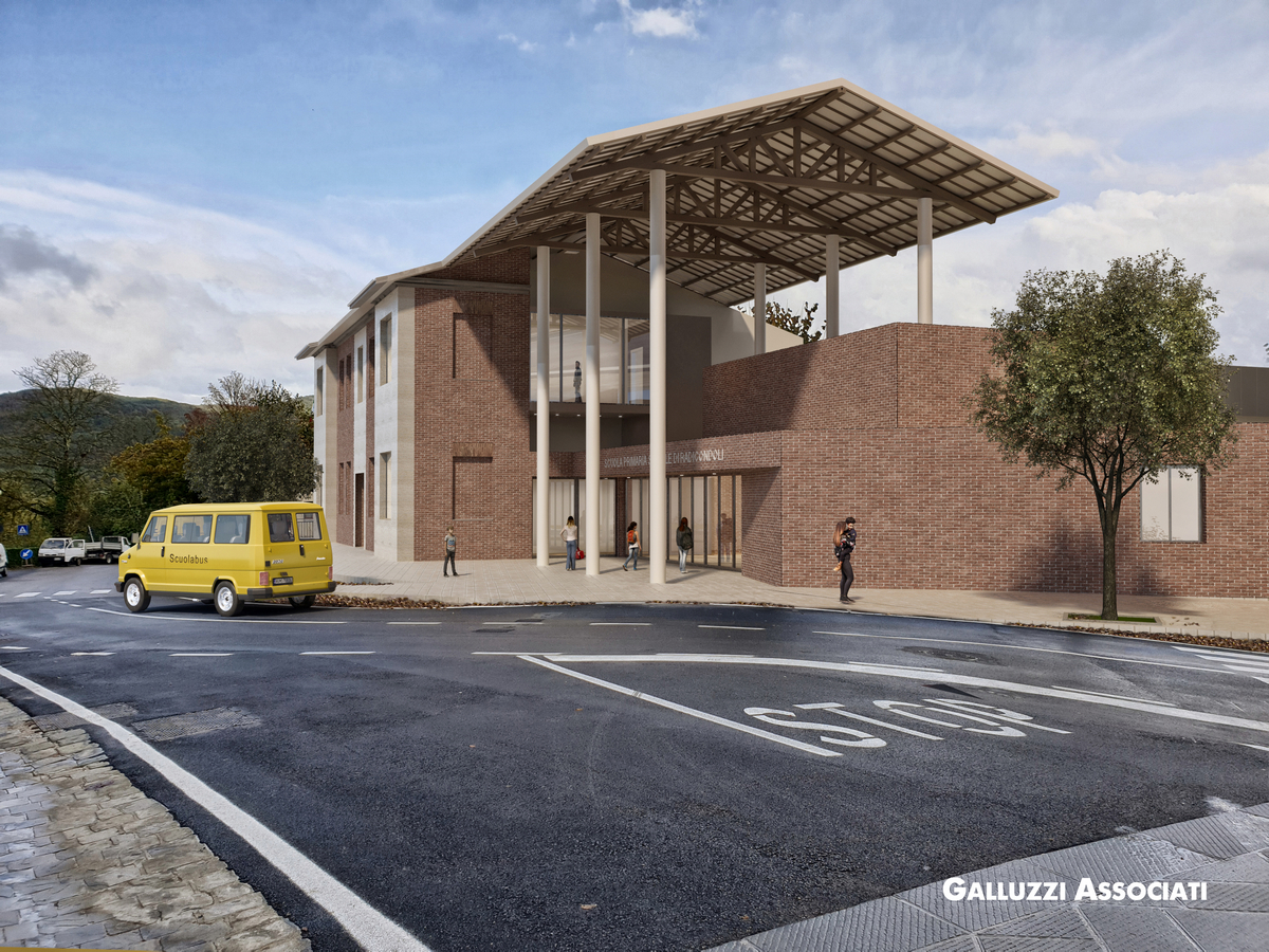 Il progetto prevede la demolizione parziale dell’edificio scolastico e della palestra esistente, mantenendo la facciata principale che si affaccia sulla strada, riconosciuta e apprezzata dalla comunità. La nuova costruzione, leggermente ampliata in profondità, poggerà in parte sulle strutture seminterrate esistenti, riorganizzando completamente gli spazi interni per una migliore funzionalità.